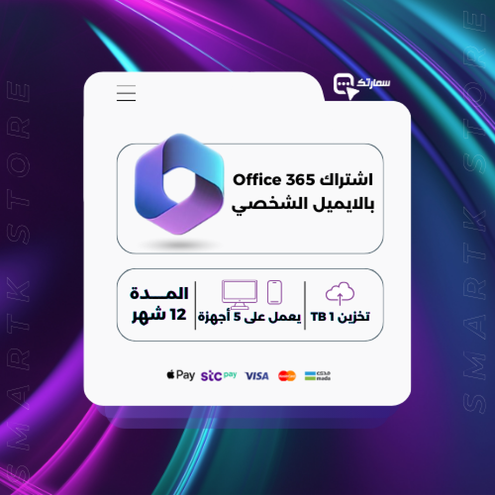 Microsoft 365 (تشغيل 5 جهاز ) على ايميلك الشخصي + ( 1 تيرا تخزين سحابي )